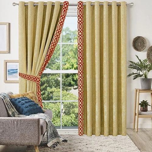 2 Pieces Crocodile Luxury Velvet Curtain Panels with 2 belts-Yellow/Maroon