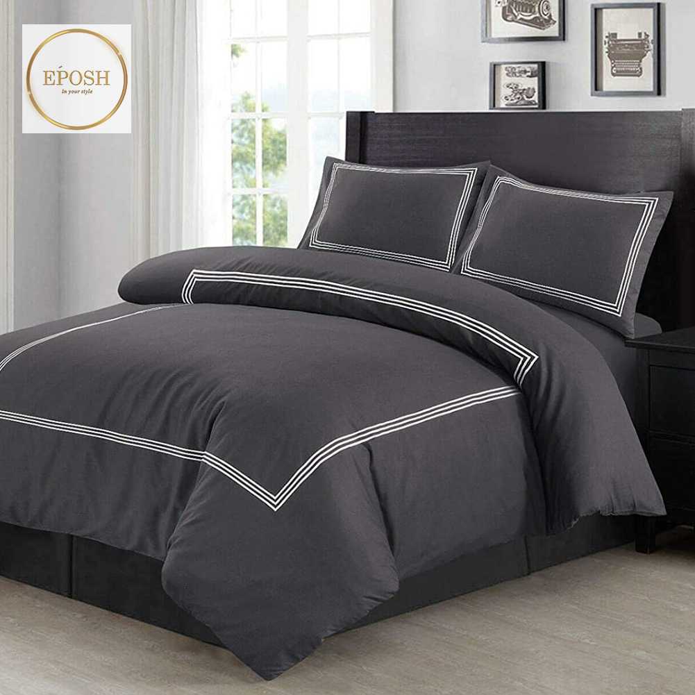Charcoal Grey Duvet Set With White Tripe Baratta Stitch