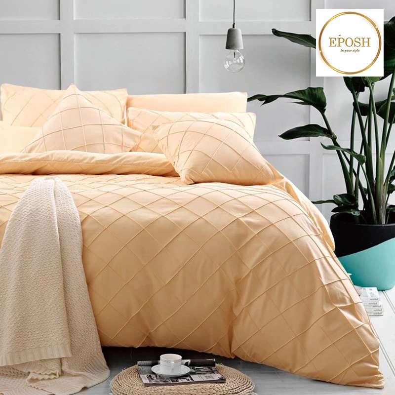 Exotic Embellish Cross Pleated Duvet Set - Mustard Yellow