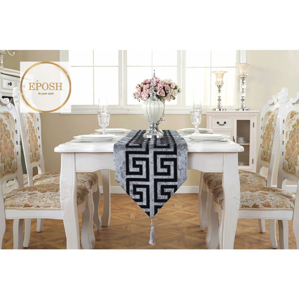 Fabric:Velvet Size of runner: 14" x 90" Size of each Mat: 12" x 18" Pattern: Lace 7 Piece set: 1 Table Runner and 6 Table mats Let your home full of vitality, bless the good life. It could be used as wedding, banquet, party, hotel, celebration, meeting, conference, house, restaurant and so on