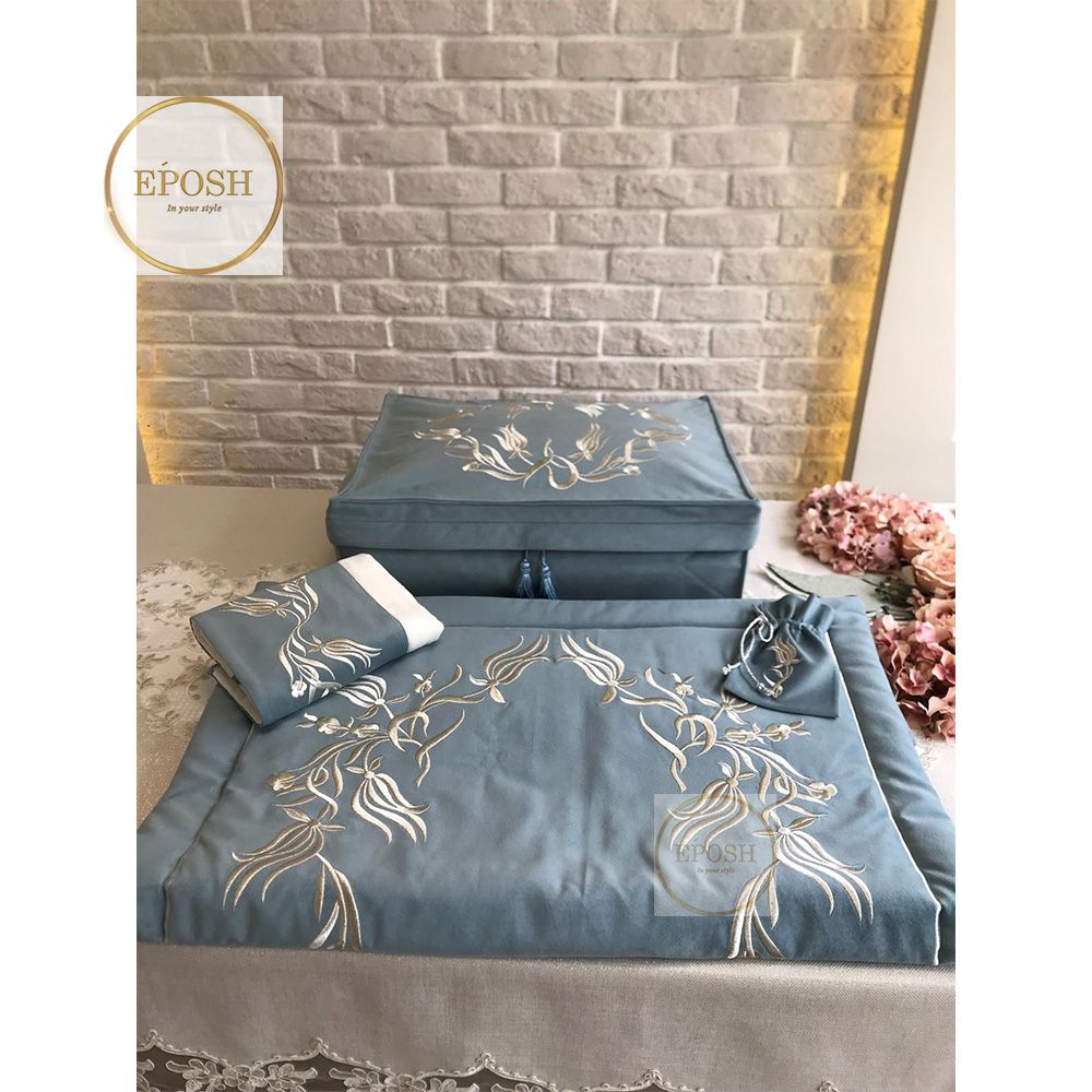 Includes 3 Pieces: 1 Prayer mat, 1 Quran Pak Cover, 1 Tasbeeh Pouch Material: Velvet Pattern: Embroidered...
