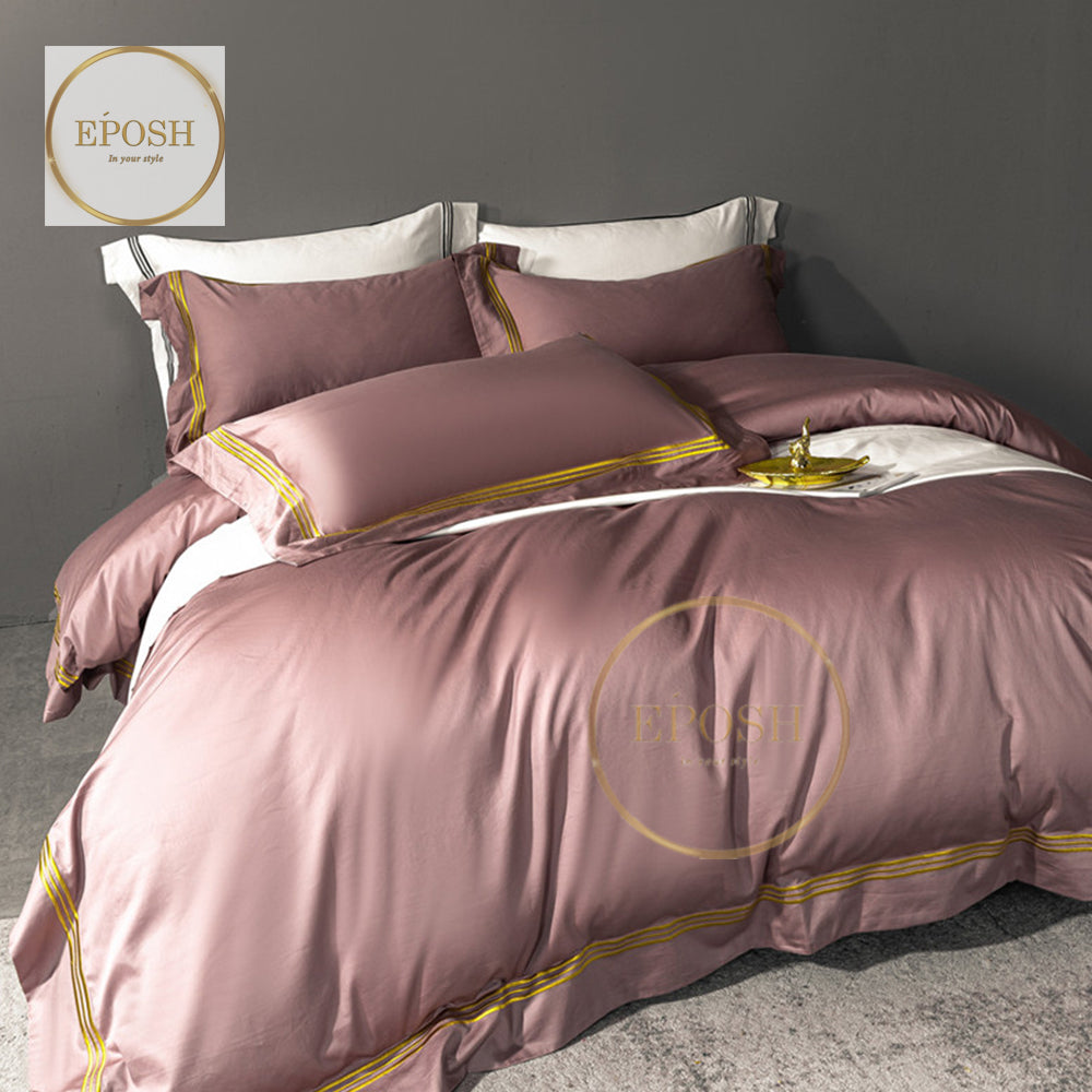 Luxury Satin Bratta Stitch Duvet Cover Set-Tea Pink