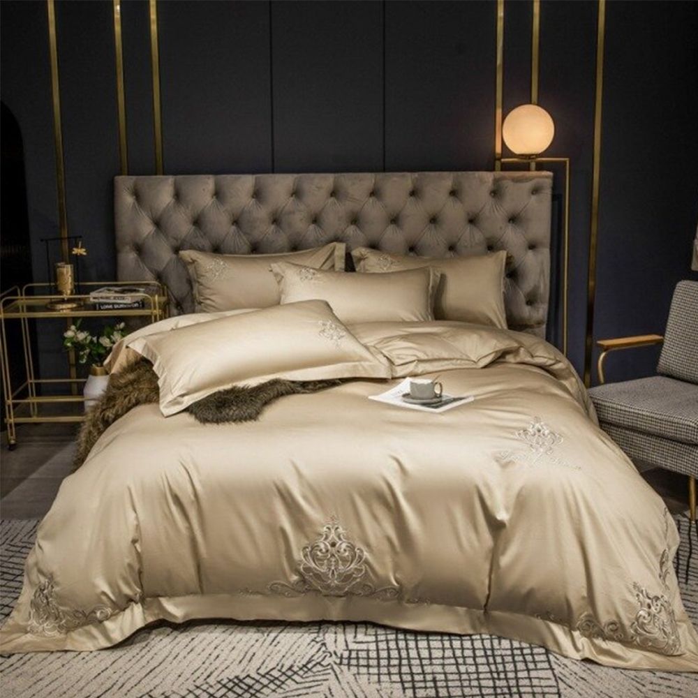 Fabric: Cotton SatinWork: EmbroideredSize: King, Include 6 Piece set:  1 Bedsheet 1 Quilt cover (emb) 2 pillow cover...