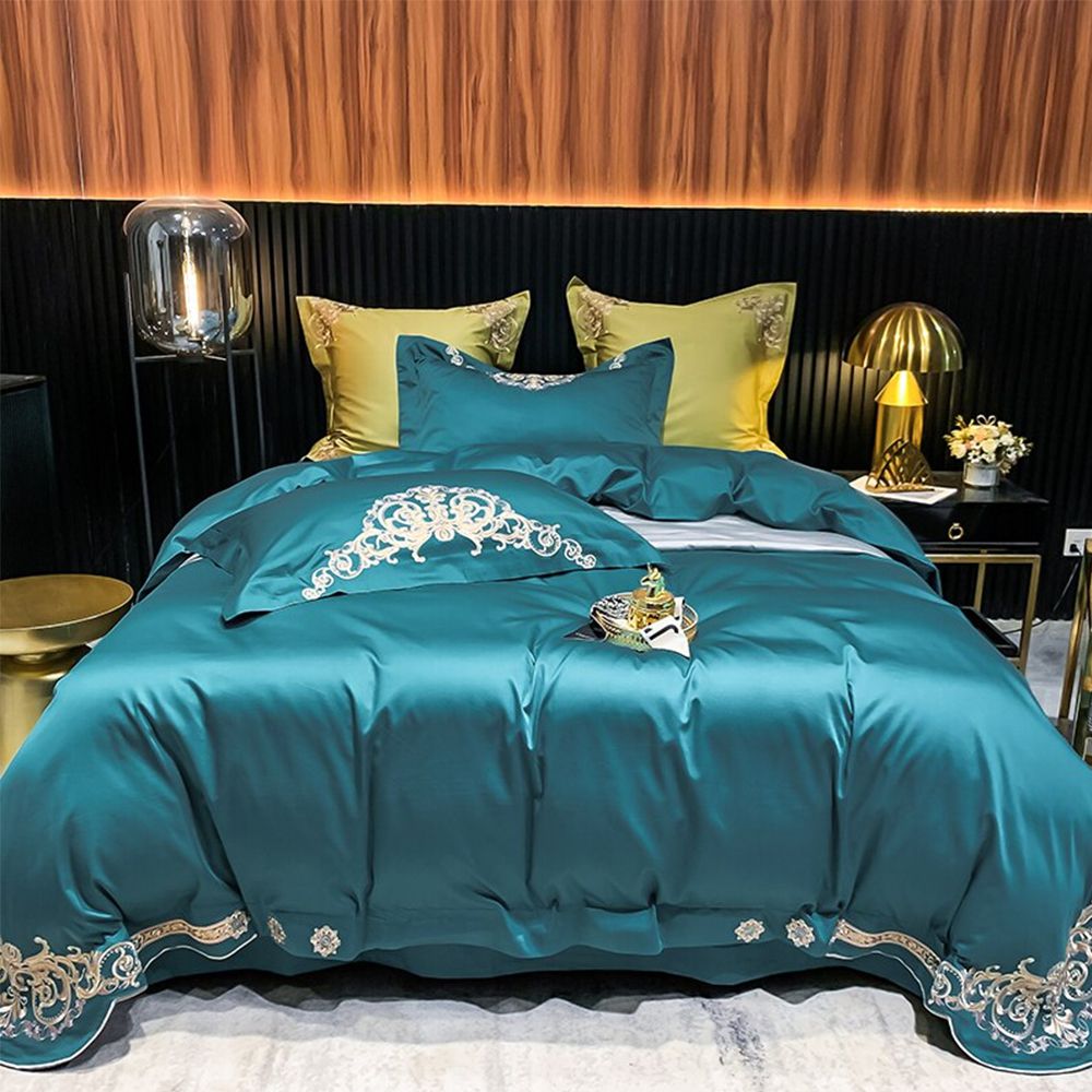 Fabric: Cotton SatinWork: EmbroideredSize: King, Include 6 Piece set:  1 Bedsheet 1 Quilt cover (emb) 2 pillow cover...