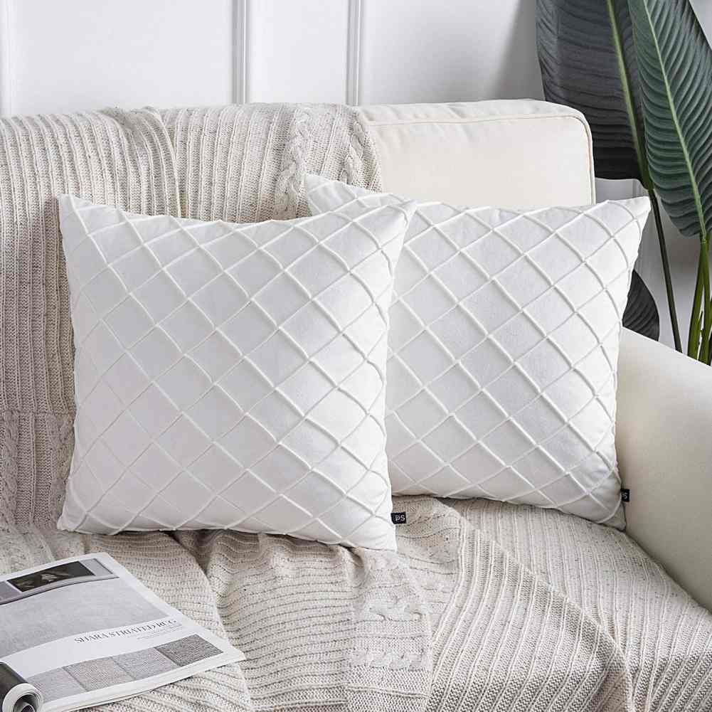 Pack of 2 Velvet Decorative Pleated Square Cushion - White