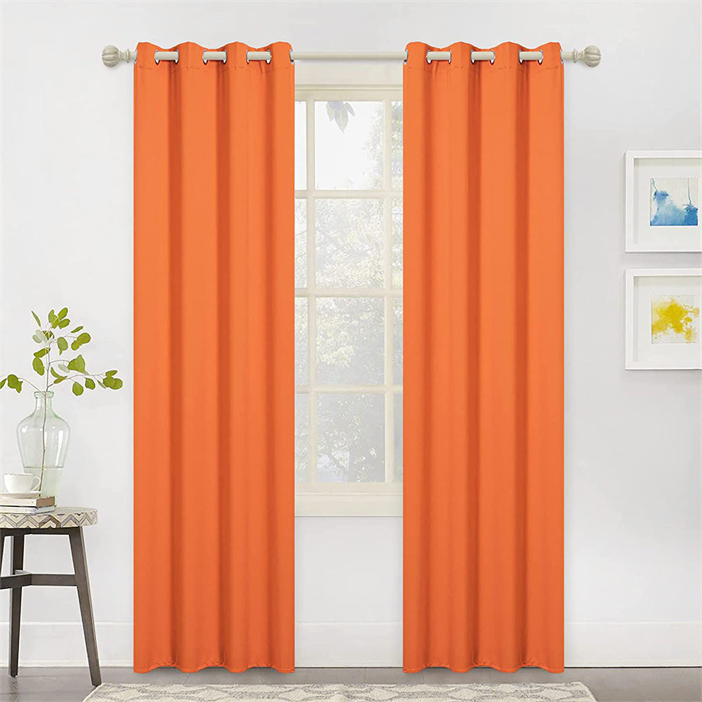 2 Pieces Plain Dyed Back Lining Eyelet Curtains - Bright Orange