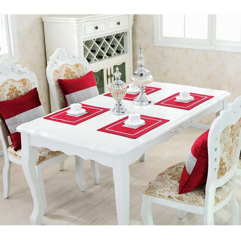 Fabric:Silk Size of runner: 14" x 90" Size of each Mat: 12" x 18" Pattern: Sequined 7 Piece set: 1 Table Runner and 6 Table mats Let your home full of vitality, bless the good life. It could be used as wedding, banquet, party, hotel, celebration, meeting, conference, house, restaurant and so on