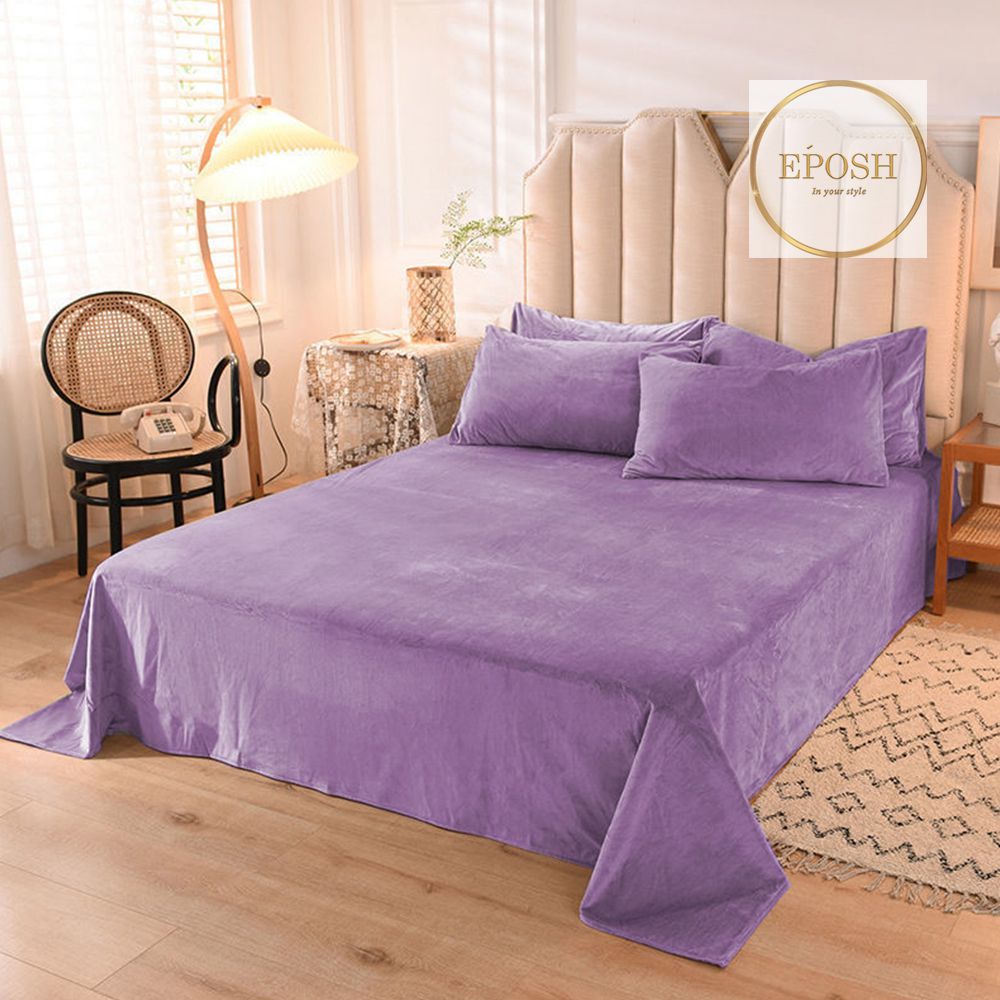 Velvet Bed sheet with 2 pillow covers - Light Purple