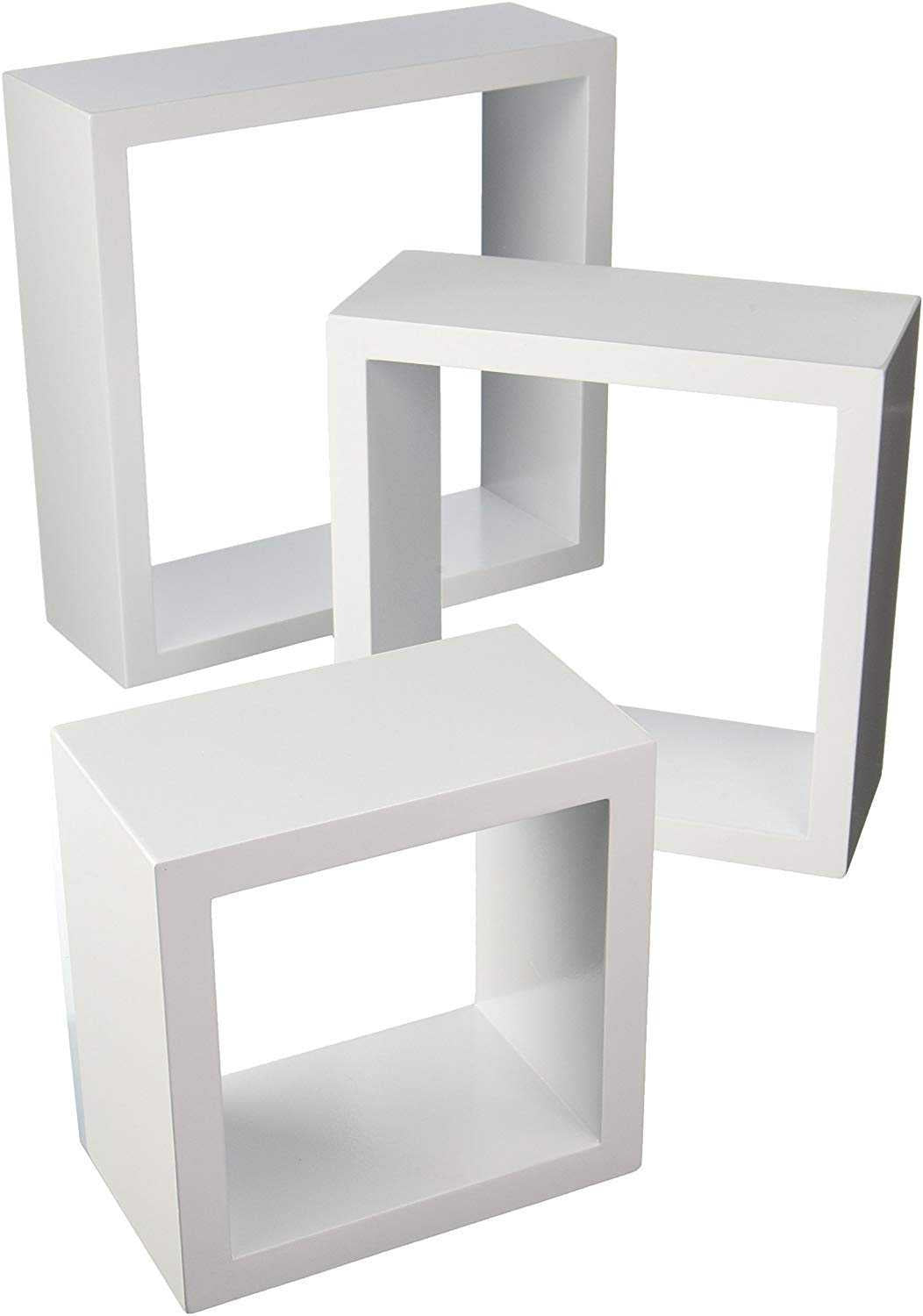 Made of Original Kale Wood & PolishedWhite Wooden Wall Shelf Set - 3 Pieces Dimension In cm(...
